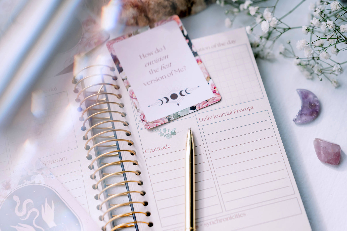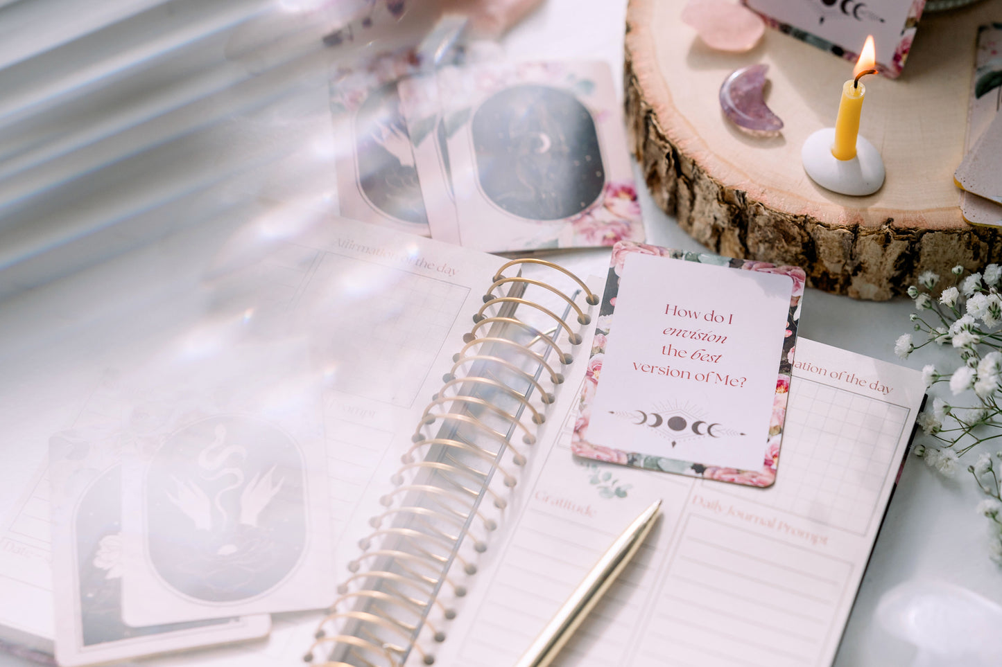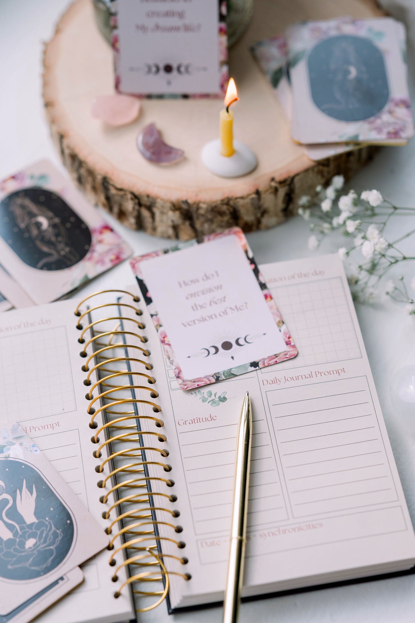 - Journal Prompt Cards: Thoughtfully curated prompts to help you dive deeper into self-reflection, heal past wounds, and gain the clarity needed for your soul’s journey.